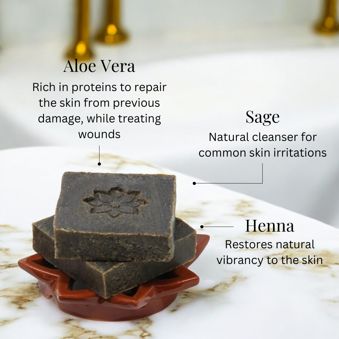 We handpick our fresh henna leaves, and dry them under the sun, before being ground and blended into our soaps, ensuring all natural qualities are preserved.