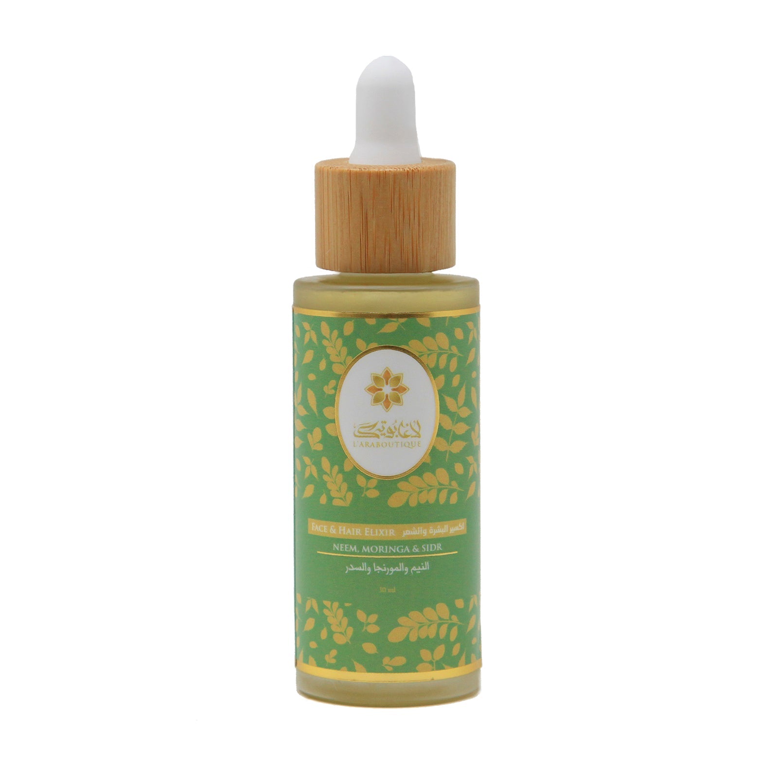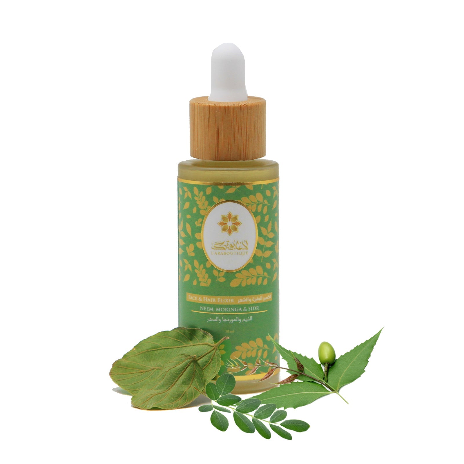 This Neem, Moringa and Sidr Elixir combines pure oils to heal and soothe skin infections, acne, eczema, and psoriasis. It fades scars and blemishes, penetrating deeply for a clear, healthy complexion. With potent healing properties, it’s ideal for restoring skin balance and vitality.
